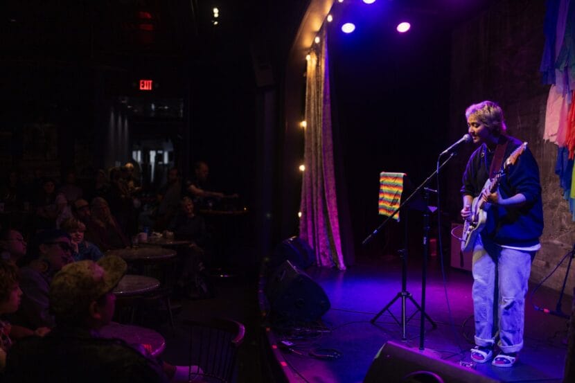 Anna Manahor: I’m Anna Mahanor and I play in a local band called the Rain Dogs. And I moved here almost two years ago. And I moved here to kind of pursue music, and I’m becoming a little bit more confident with playing because I always used to get really nervous when I would go up on stage.