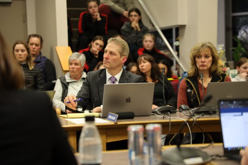 The board at first voted the plan down after four hours of public comment and more than two hours of discussion. But at 12:30 in the morning, after taking a recess, they quickly approved it with specifications for two optional programs: moving the Yaaḵoosgé Daakahídi alternative high school to the Dzantik’i Heeni Middle School building and leaving the Tlingit Culture, Language and Literacy program at Harborview Elementary.