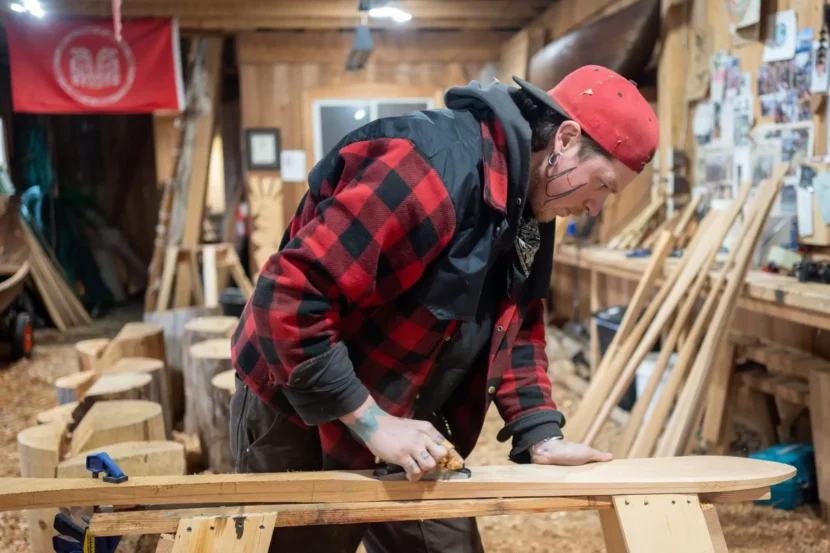 “It’s pretty exciting to be going on this journey for the first time in our own canoes from our own community and meeting up with a lot of other communities on the way,” Hamar said as he worked. “I think, hopefully, it’ll bring a lot of inspiration to the people and hopefully get some folks excited about maintaining the traditions.”
