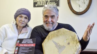 My mom is in Arizona, and my sister’s in Texas, and my grandma is in Ketchikan. So everybody’s spread out, and it’s hard to get everybody together. And we are joining a dance group that we used to dance with in Sitka — the Sheet’ka Ḵwáan dancers.