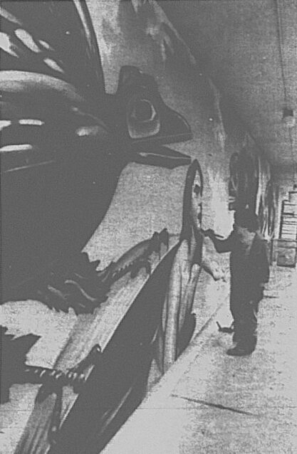 But, in an old newspaper article, Ray said the mural was inspired by a carving by the late Bill Reid, a renowned Haida artist from British Columbia. It tells the Haida legend of how man came to be.