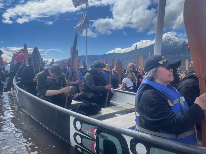About 70 people in six canoes paddled north from Wrangell to Juneau last month for Celebration, a biennial cultural gathering that celebrates Southeast Alaska tribes.