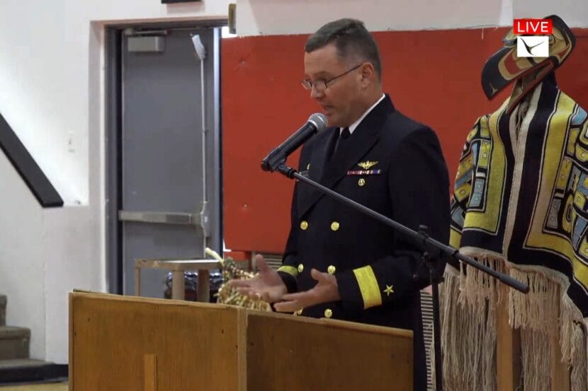 U.S. Senator Lisa Murkowski, who is an adopted member of the Tlingit Deisheetaan clan, spoke at the ceremony. She said she hopes the Navy’s apology will promote healing.