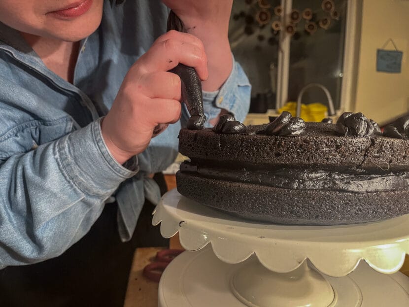 “I always want layer cakes to turn out a little better than they do, and then I usually get to the end of it and I’m like, it’s more important to me that this tastes good,” she said as she started frosting.
