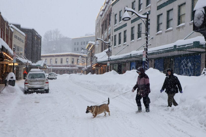 The heavy snow has collapsed some roofs across town and multiple boats have sunk at Juneau’s harbors.
