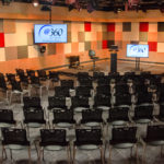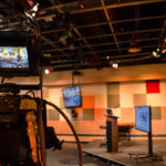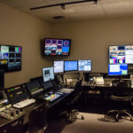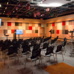Studio Video Production Equipment: 5 Sony HD cameras (3 pedestal mounted triax and 2 wall mounted robotic cameras), 70” LED monitor; 50″ LED monitor, 4000 lumen full HD projector and 10′ screen. Main Production Control Room has: Logitek digital audio system, Ross Carbonite+ 2ME live production video switcher with 18 inputs, Ross XPression Studio character generator, Harmonic Spectrum, Ross BlackStorm and 360 Systems Maxx video servers, wired & wireless mics, RTS/Telex intercom system, Riedel MediorNet, Teleprompters. HD edit suits. 3 smaller control rooms with Ross Graphite 1ME integrated production systems with 9 inputs, XPression Studio graphics & Clips, Ross RAVE audio. Facility operates at 1080i59.94 broadcast standard as default, other modes available. Additional production equipment available on request.