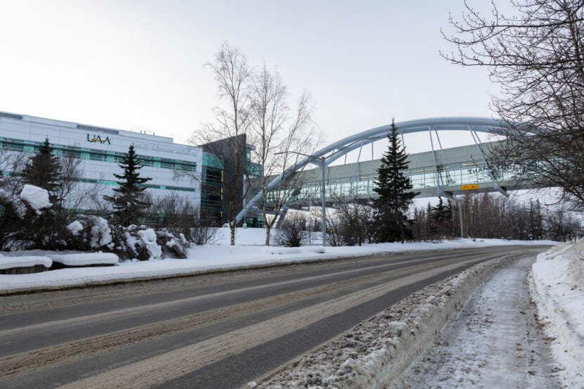 The University of Alaska Anchorage campus on Dec. 30, 2021. On Tuesday, Anchorage Superior Court Judge Adolf Zeman heard oral arguments in a lawsuit by four Alaska university students suing the state to try to keep more than $400 million in the Alaska Higher Education Investment Fund. (Photo by Lyndsey Brollini/KTOO)