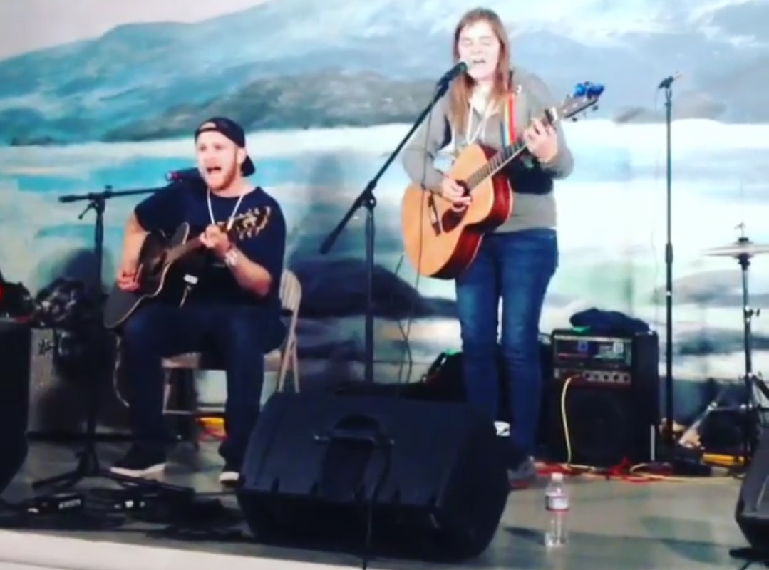 Liz Snyder and Alex Kotlarsz peform at Homeskillet Festival in Sitka, Alaska. Screen capture from Nicholas Galanin.