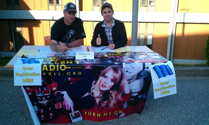 Last fall KXLL, Juneau’s radio station for youths aged 18-28 took on the issue of voting with its audience. With the help of the Alaska Director of Elections, Gail Fenumiai, three staff members and one volunteer were trained to become voter registrars to launch a campaign to get young people registered to vote in both our municipal, state and national elections. By setting up tables in high visibility and unlikely areas including the university, grocery store, and outside of some of Juneau’s popular bar and food establishments, our campaign was able to reach people who may not be able to take advantage traditional voter registration locations like DMV. The registration push culminated with a “Rock the Vote” event on September 15th, with 3 local bands, the League of Women Voters and both major parties represented. We were successful in registering several dozen first time voters. This registration campaign was also coupled with heavy PSA campaign encouraging people to “get out and vote” for the causes that mean most to them. This has been a great public service for the young KXLL audience, instilling the sense of civic responsibility.