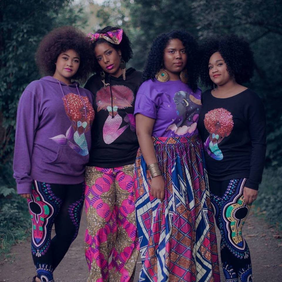 Tahir McInnis (second from left) models designs from her fashion line Melanin Auntie which appeared as a pop-up shop at Downtown Dames First Friday during September. (Photo courtesy of the artist)