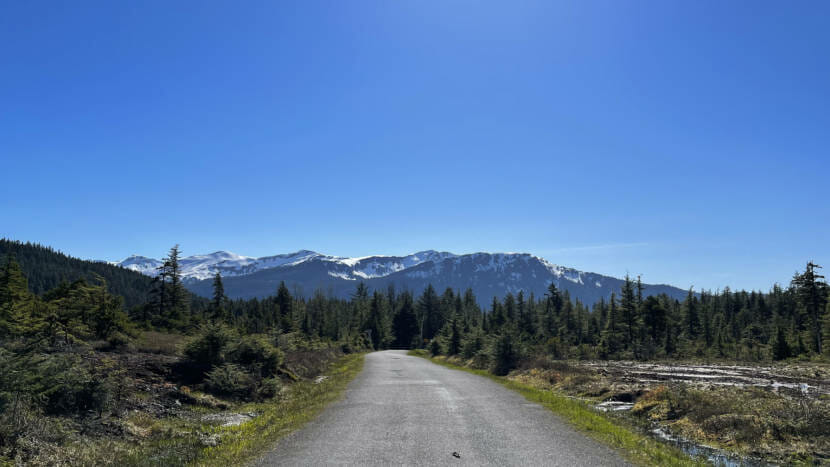 The road leading up to the Montana Creek trail on May 18, 2021, in Juneau, Alaska. (Photo by Rashah McChesney/KTOO)
