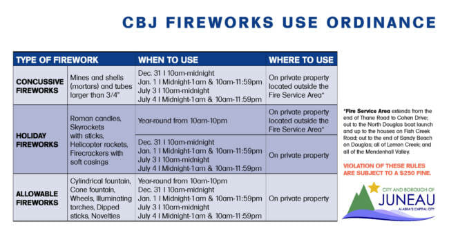 Earlier this year, the city’s assembly passed new measures for how fireworks can be used on holidays like Independence Day and New Year’s Eve. (Image courtesy of City and Borough of Juneau)