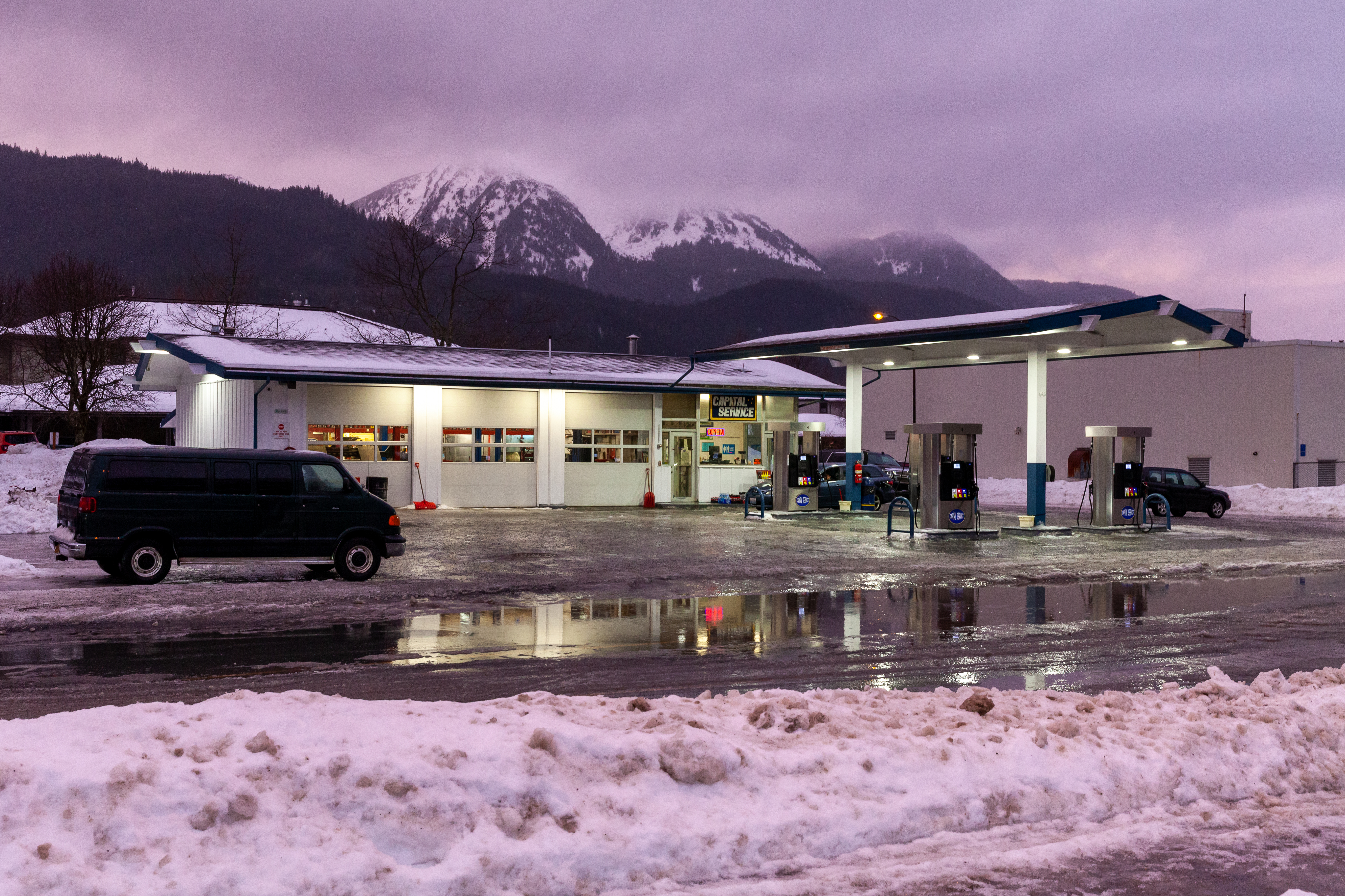 The full service Capital Service gas station in downtown on Tuesday, Jan. 11, 2022, in Juneau, Alaska. (Photo by Rashah McChesney/KTOO)