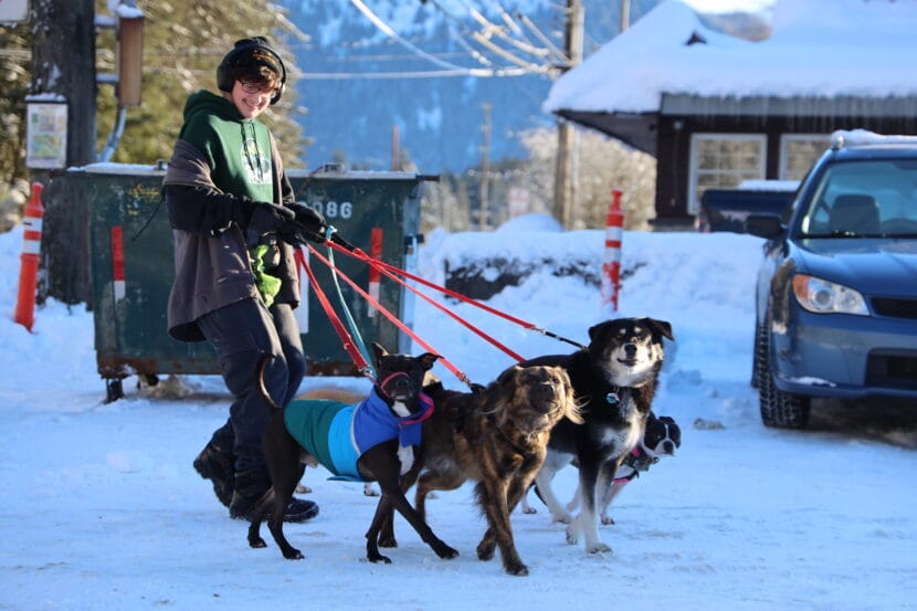 A Juneau Animal Rescue employee takes dogs out for a walk on Thursday, Jan. 18, 2024. (Clarise Larson/KTOO)