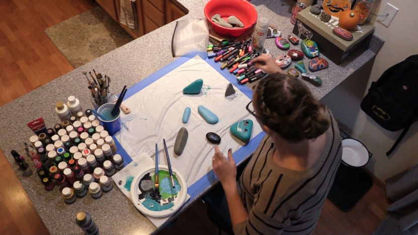 She sometimes paints rocks with her husband and 5-year-old son, but she enjoys painting by herself as well.