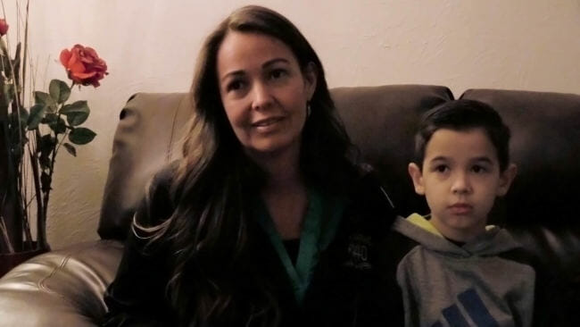 Chloe Abbott and her son, Tristan Ridgeway. (Video still by David Purdy/KTOO)