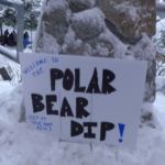 The sign for the 2018 New Year’s Day Polar Bear Plunge at Auke Rec (Photo by David Purdy/KTOO)