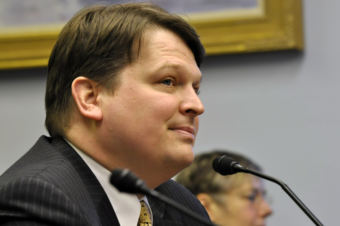 Interior Assistant Secretary for Land and Minerals Management Joe Balash, a former Alaska Department of Natural Resources commissioner, answers questions from the Alaska Senate Resources Committee on Feb. 28, 2014. (Photo by Skip Gray/Gavel Alaska)
