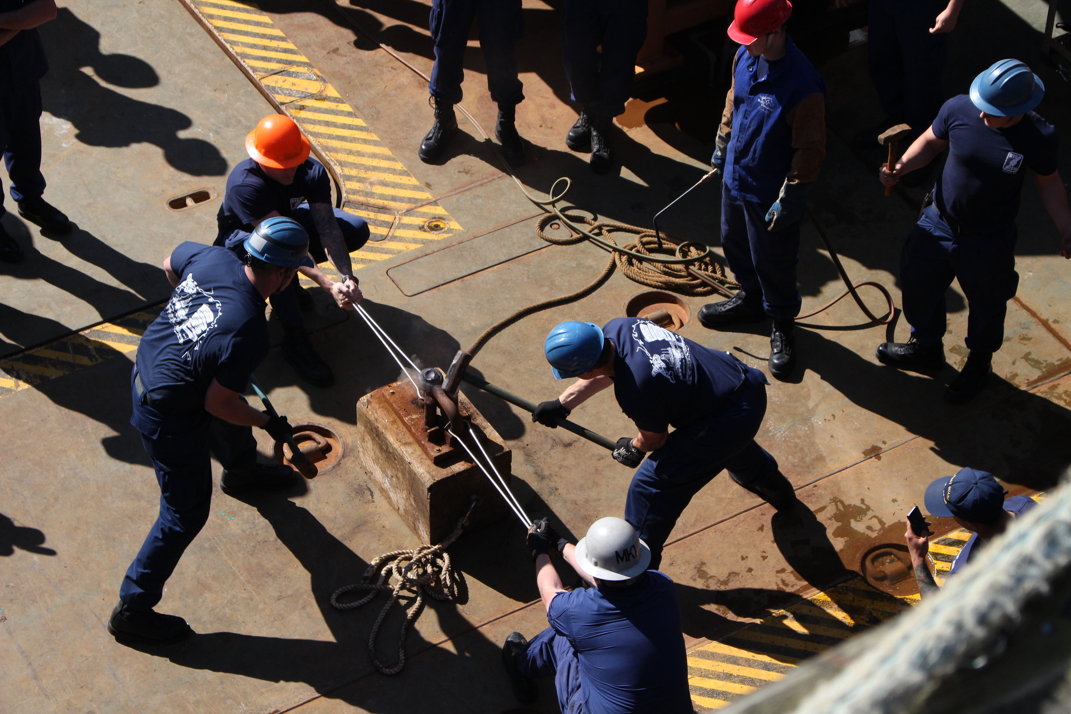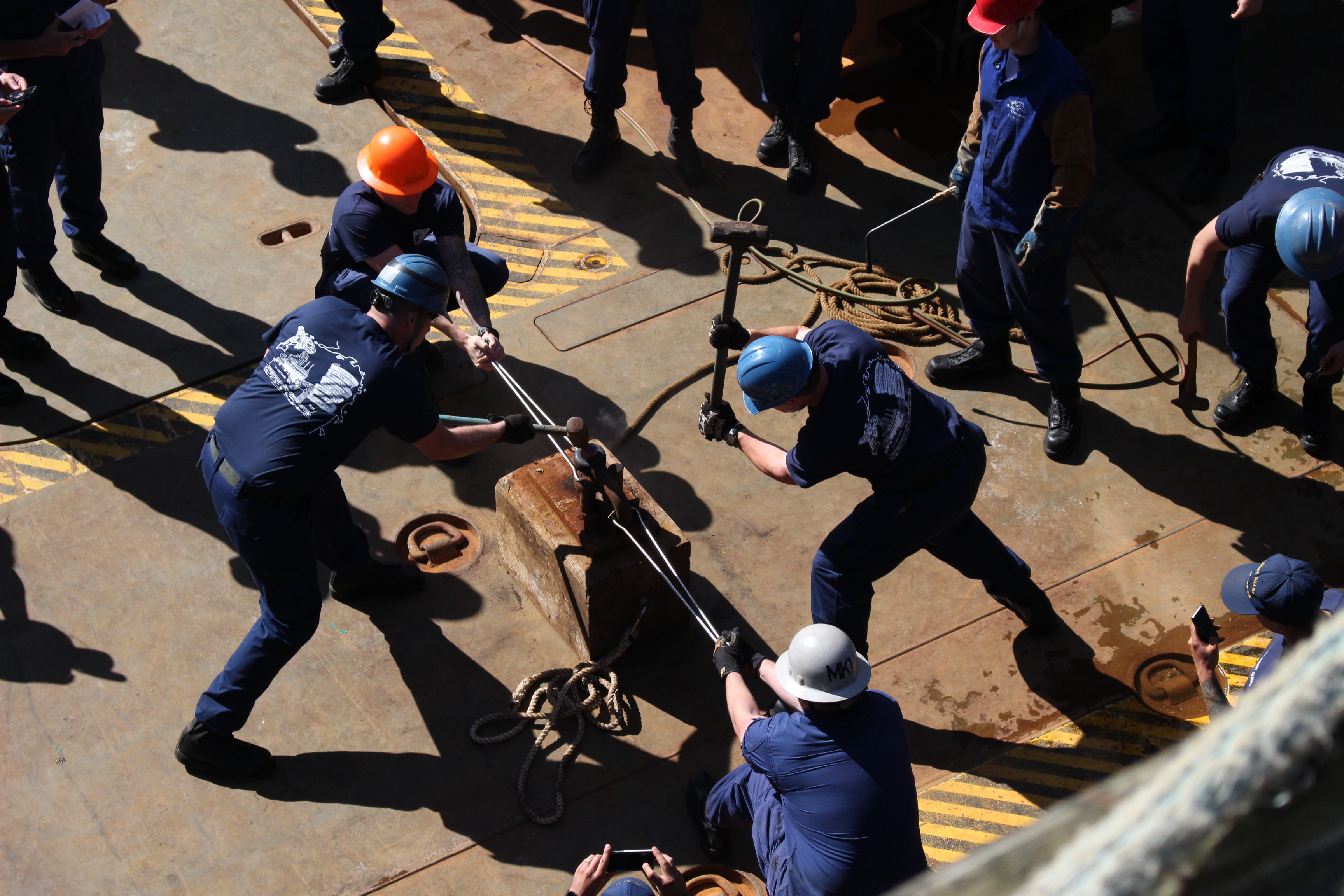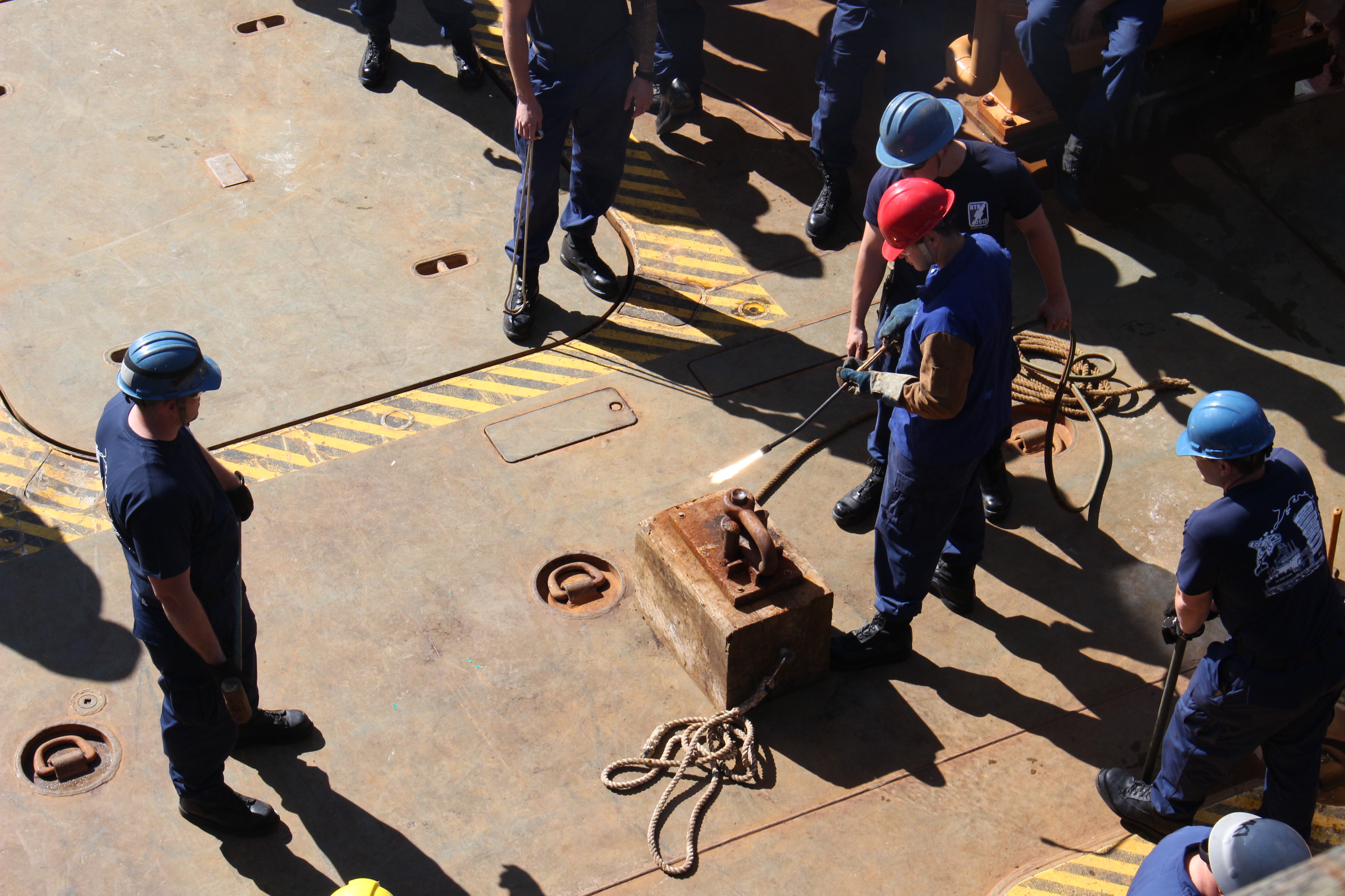 On Coast Guard Cutter Maple, team members heat up a chain to make it malleable. (Photo by Elizabeth Jenkins/KTOO)