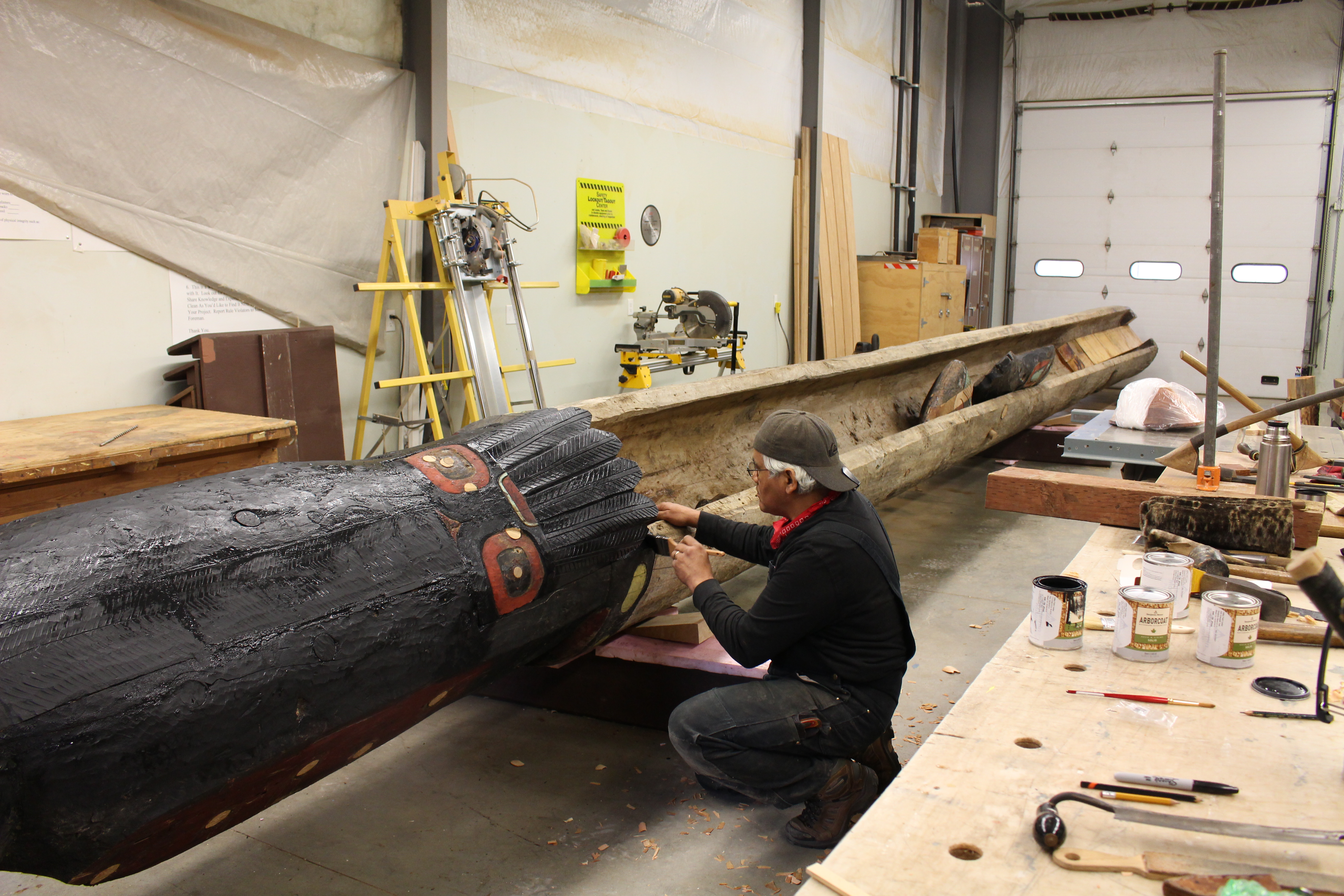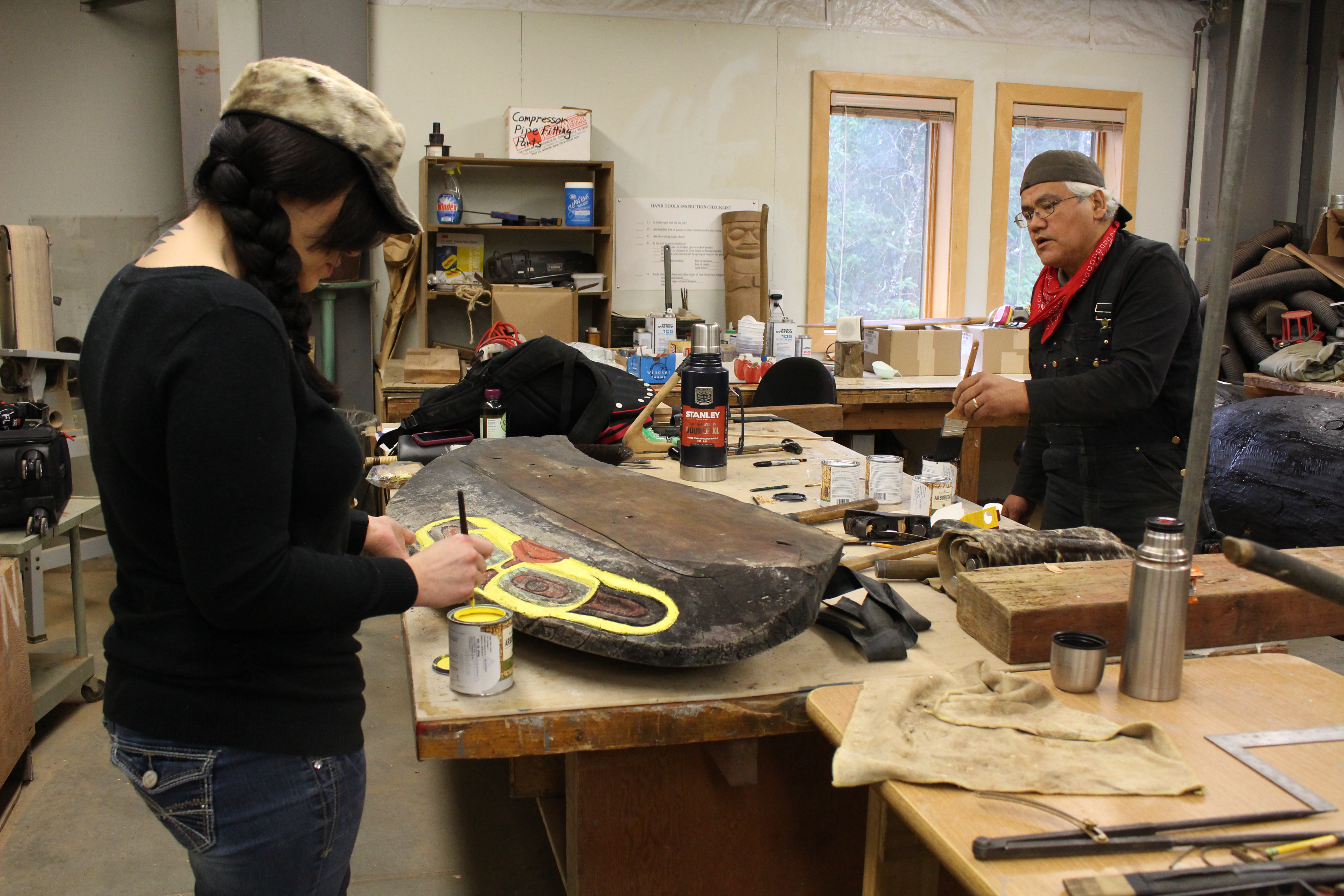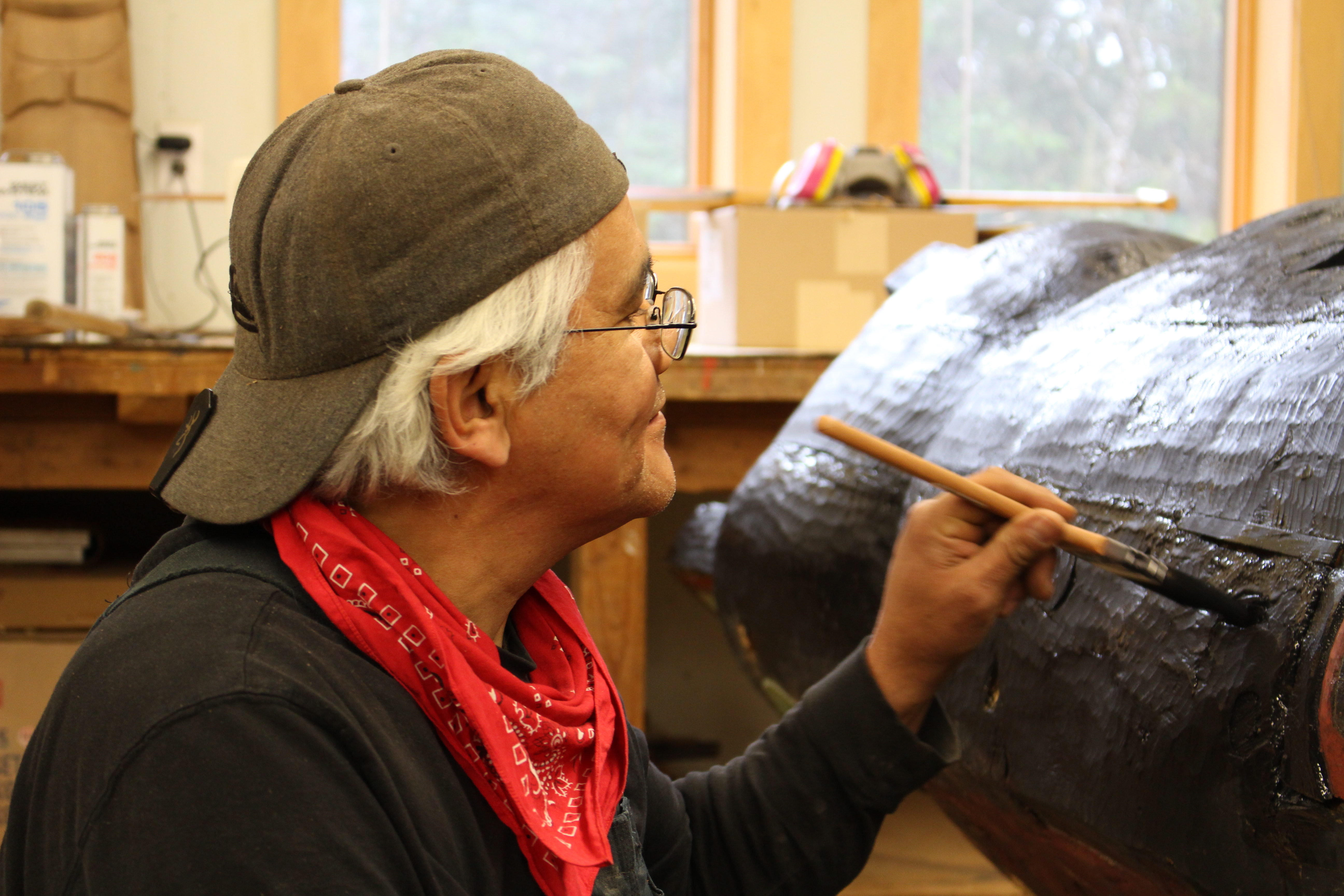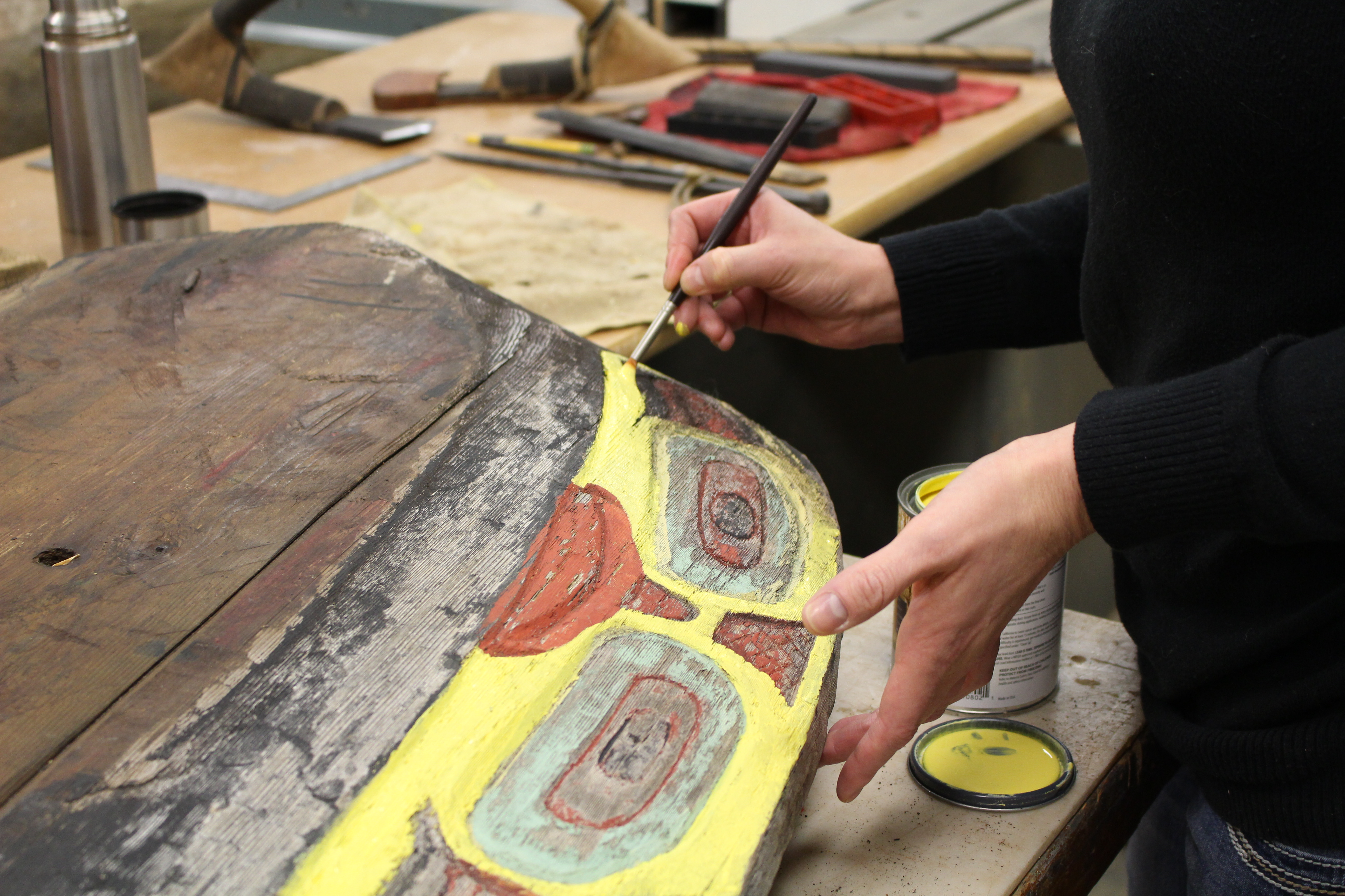 Wayne Price is the master carver for the restoration and has been doing this kind of work for over 43 years—making dugout canoes and totems. He’s a Tlingit from Haines and says he found his calling watching his dad.