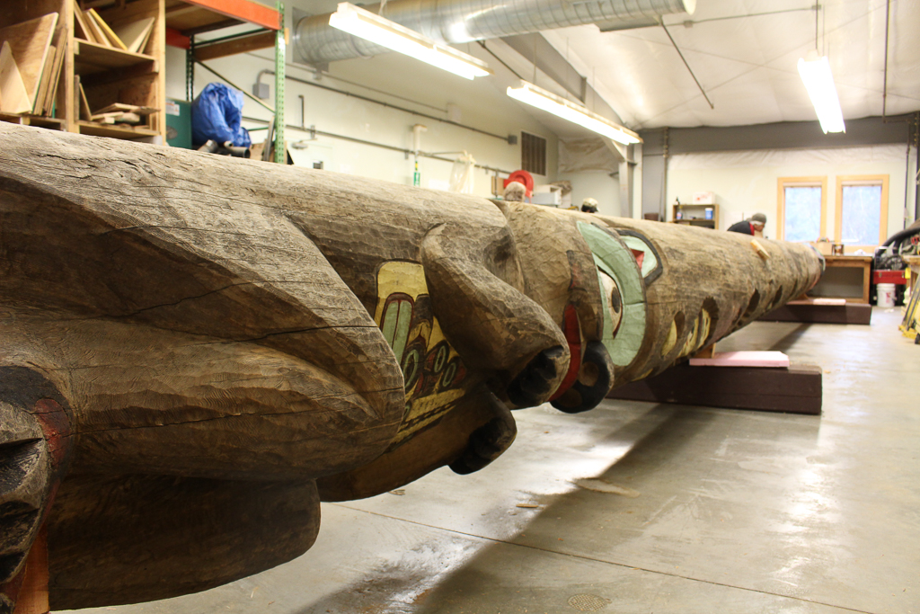 The Yax té totem is 47 feet long. (Photo by Elizabeth Jenkins/KTOO)
