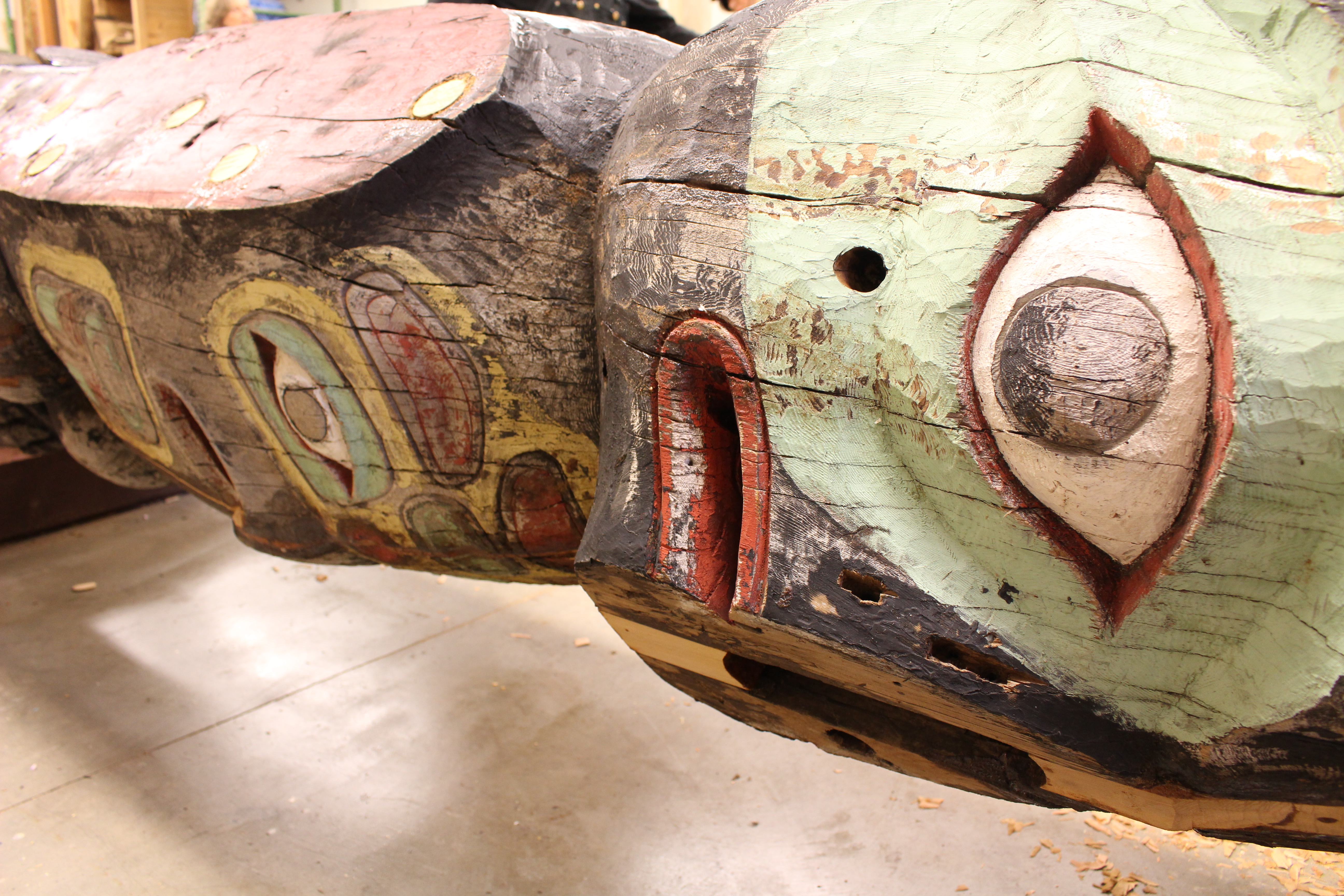 The restoration will be completed in the following weeks. The wings will be put back on the totem. It’s being repainted turquoise, yellow and red. Wayne Price says story poles like this one are, essentially, a history book of Native culture.