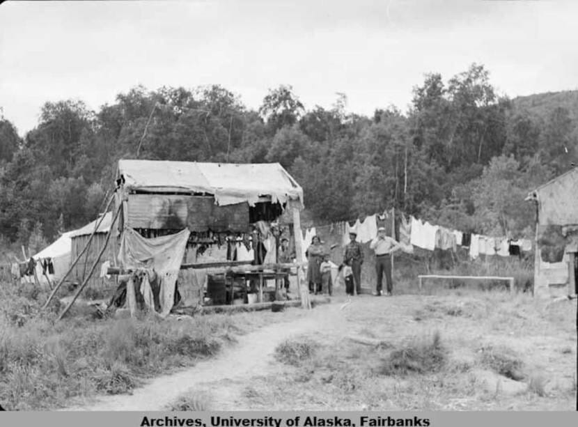 A fish camp in the past. (Photo courtesy of University of Alaska, Fairbanks)A fish camp today (Photo by Meghan Sullivan, Indian Country Today)