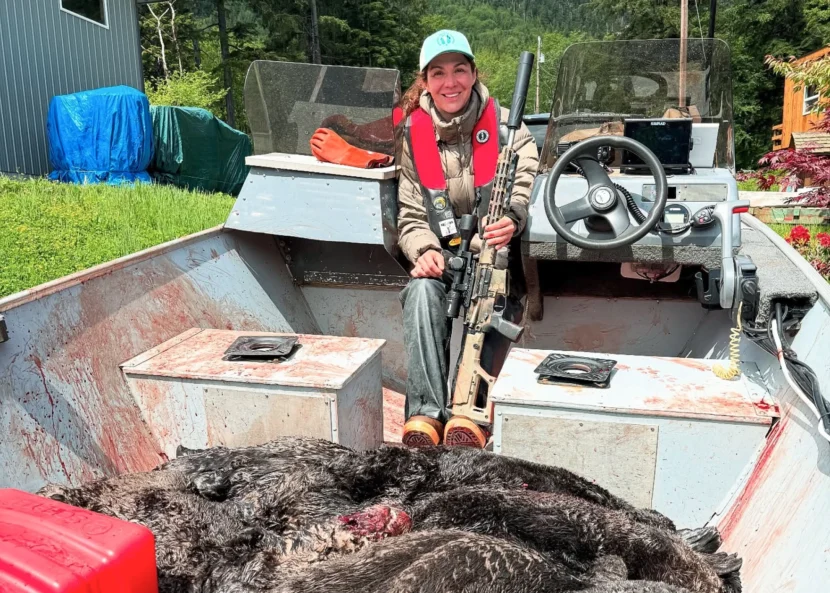 Kootink Heather Douville in her skiff with sea otters she hunted near Prince of Wales Island, in a photo posted to her Instagram account on June 13. (Photo courtesy of Kootink Heather Douville)