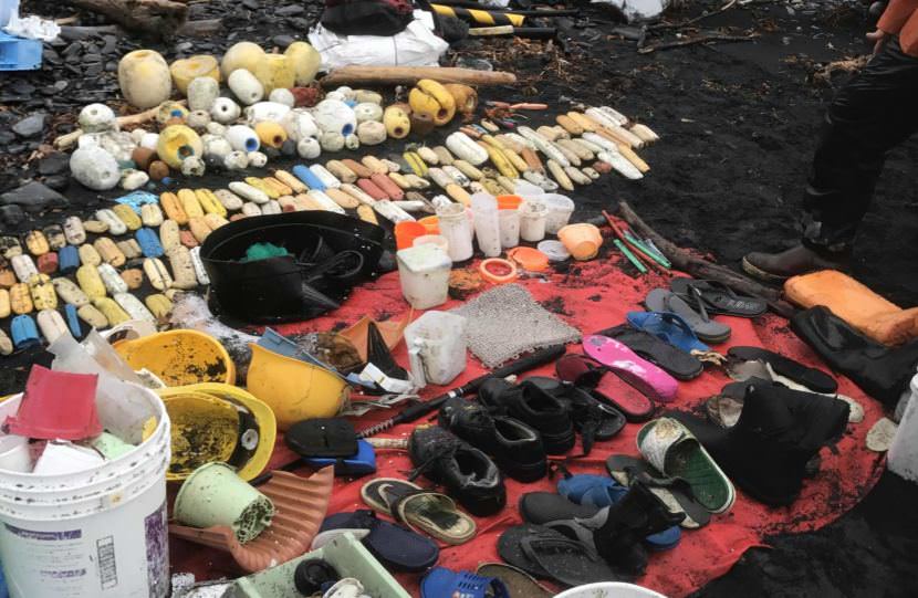 Marine debris collected on Gore Point. (Aaron Bolton/KBBI)