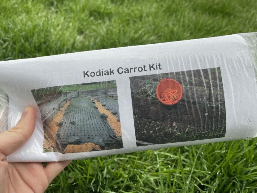 Jackson’s carrot kits come with 500 seeds, solar mulch and instructions. (Kirsten Dobroth/KMXT)