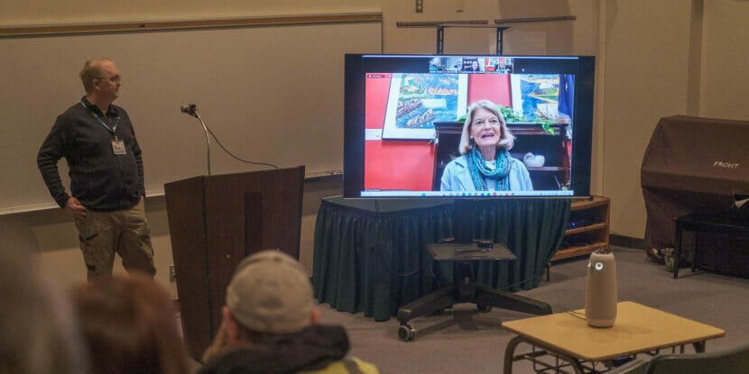 Sen. Lisa Murkowski and Rep. Mary Peltola addressed attendees virtually for the kickoff forum of ComFish on Thursday, March 16, 2023. (Brian Venua/KMXT)