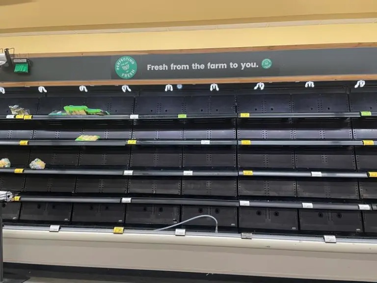 The store’s produce shelves were also nearly empty. The bread aisle took a big hit. So did the meat department. Several restaurant owners also posted in a popular community Facebook page that they were running low on supplies.