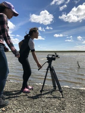 Katie Demientieff from Akiuk is documenting climate change as part of a film workshop. (Photo by Katie Basile / KYUK)