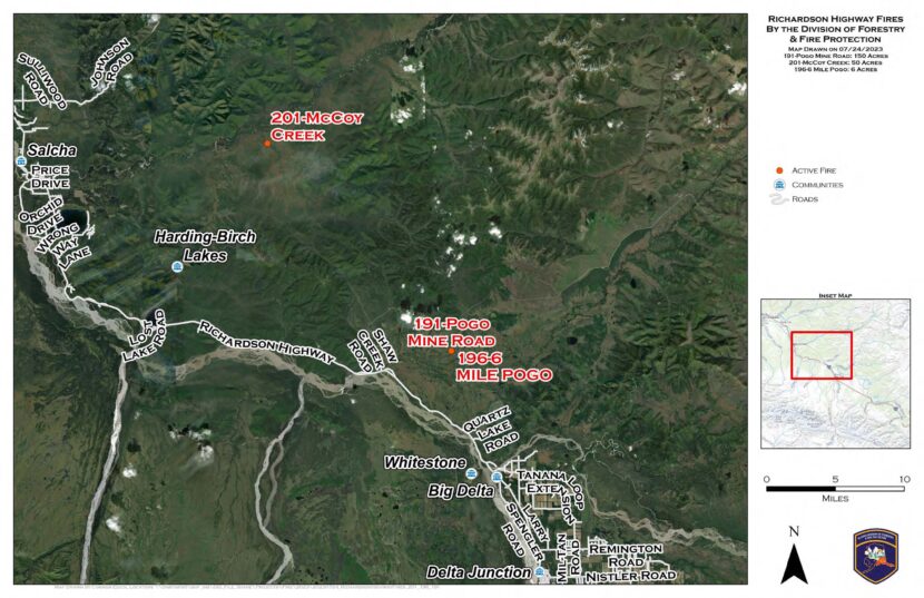 Also Tuesday, Forestry sent a Tanana Chiefs initial-attack crew to the 6-Mile Pogo Fire that’s burned six acres in an area near the Pogo mine access road north of Delta Junction. Coyle says it’s considered a priority fire.