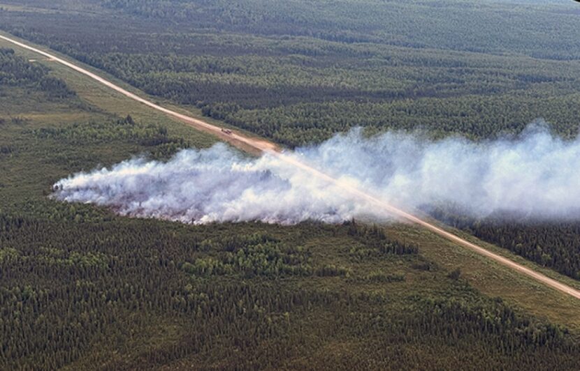Coyle says Forestry is monitoring another nearby wildfire — the Pogo Mine Road Fire that’s burning farther up the road toward the mine.