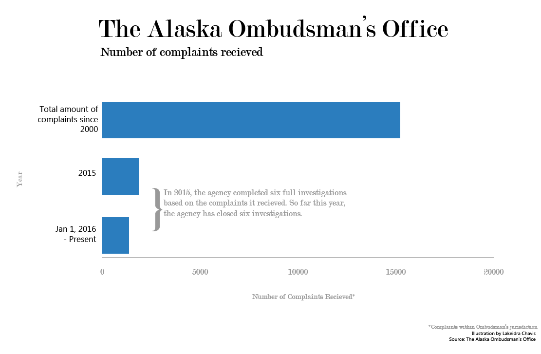 Between 2005 and 2010, the Alaska Ombudsman’s office, the state agency that handles complaints against the government, received nearly 20 complaints regarding ASCHR.