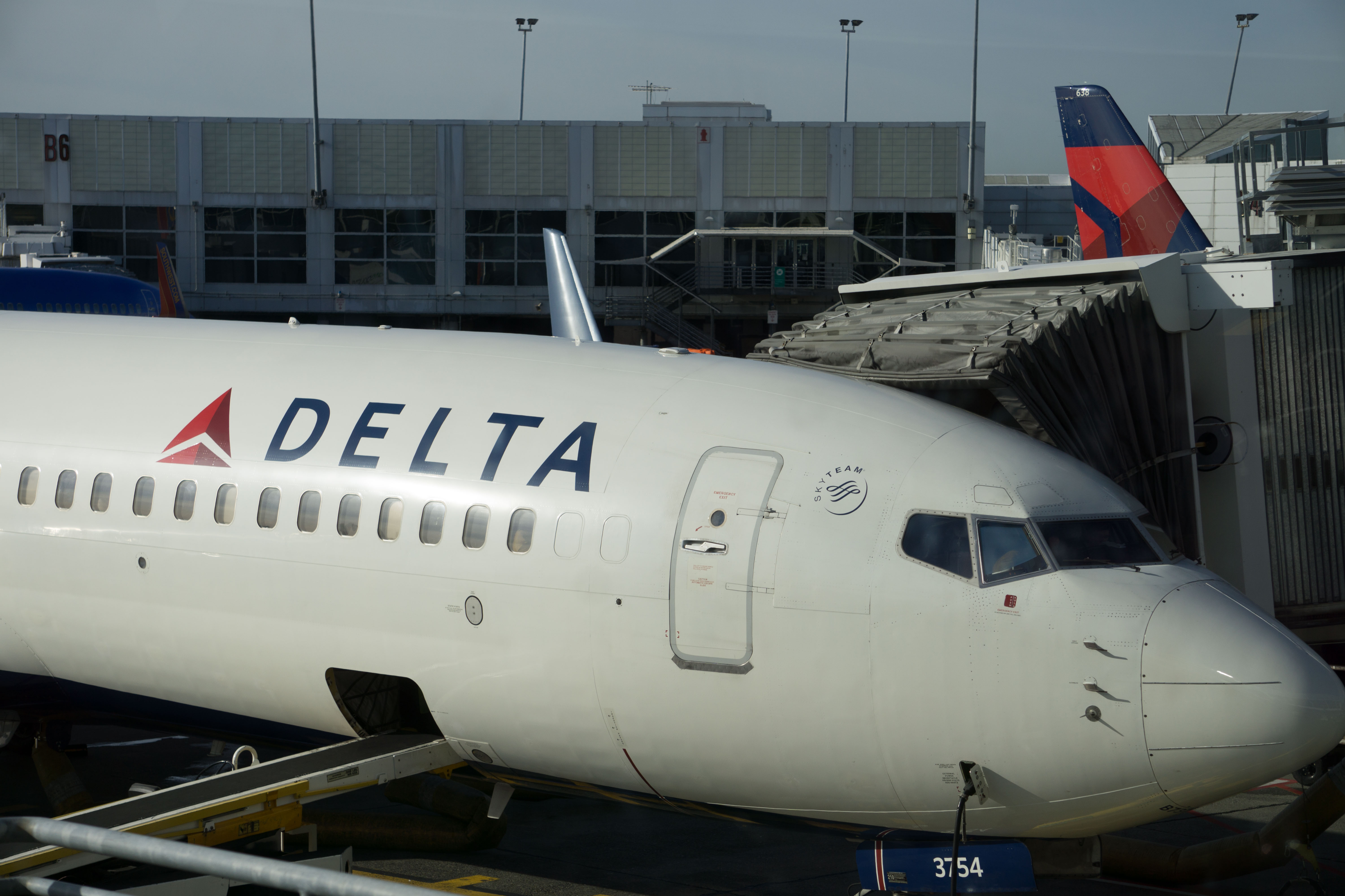 A Delta airplane at Seattle-Tacoma International Airport in November. (Photo by Jeremy Hsieh/KTOO)