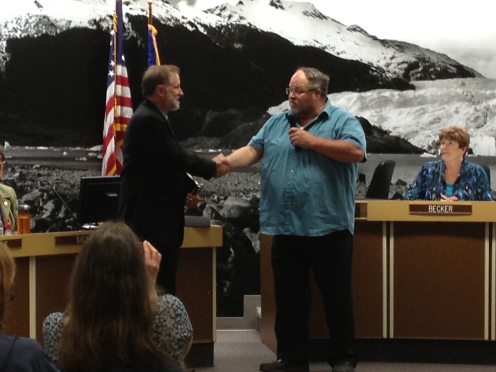 Mayor Merrill Sanford recounted Hartle’s early career, “John worked for the Alaska State Legislature as a legislative aide to Senator Vic Fischer and Representative Brian Rogers in 1979 and 1984. He also was chief of staff to Representative John Sund from 1985-1988, so he has particular skill sets on handling the legislative people on the hill, for sure.”