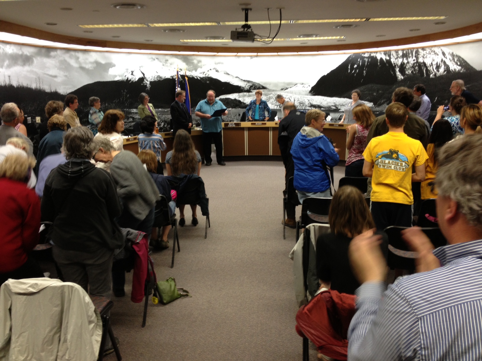 City attorney John Hartle received a standing ovation in assembly chambers last night for his 20 years of service to the city of Juneau. CBJ assembly presented Hartle an Award of Appreciation.