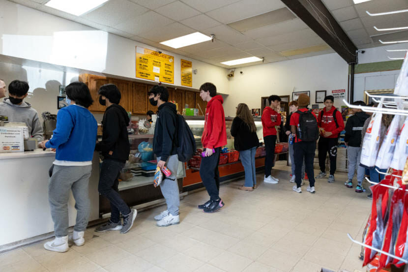 High school kids line up inside J & J Deli and Asian Mart in Juneau, Alaska for lunch. (Photo by Lyndsey Brollini/KTOO)