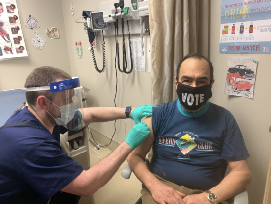 SEARHC chief medical officer Dr. Elliot Bruhl receives his first dose of the COVID-19 vaccine. (SEARHC photo)
