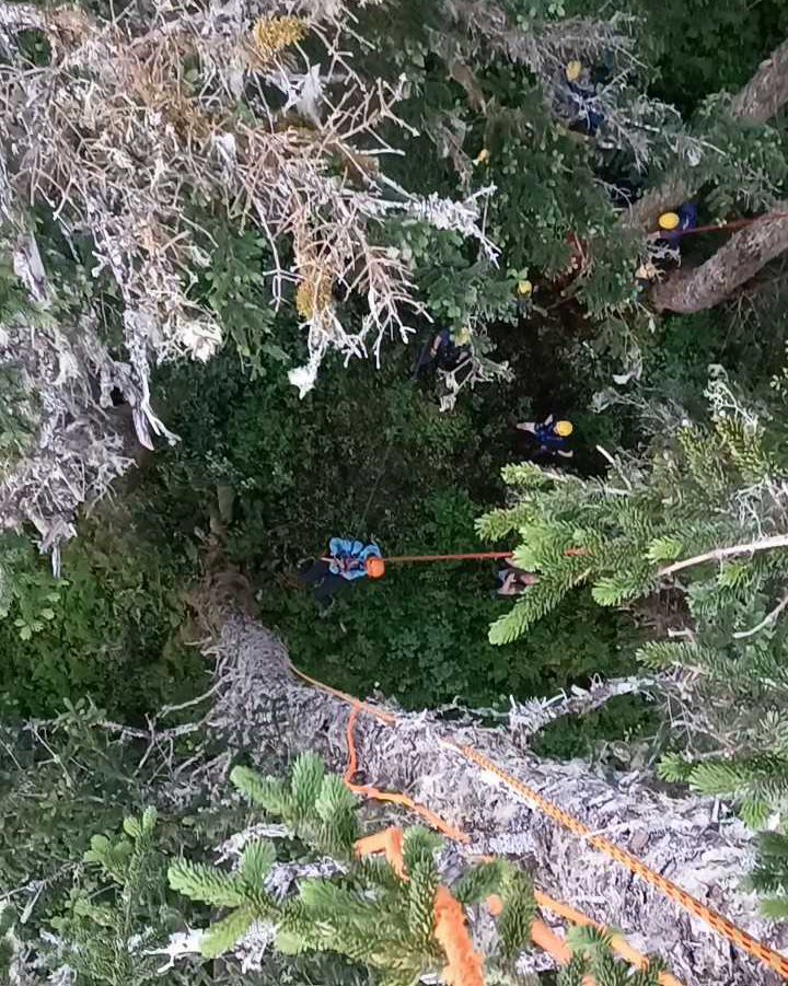 Somebody called me from search and rescue, inquiring about a paraglider that had gotten caught up in the tree, roughly 60 feet off the ground at the Mount Roberts tram. So I went ahead and drove myself to the parking lot at the tram. Parked, put my gear back on, got to the site. By about seven o’clock I was getting into a tree, the tree that she was in.