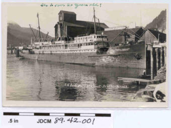 The S.S. Admiral Farragut docked in Juneau. (Photo courtesy of the Juneau-Douglas City Museum)