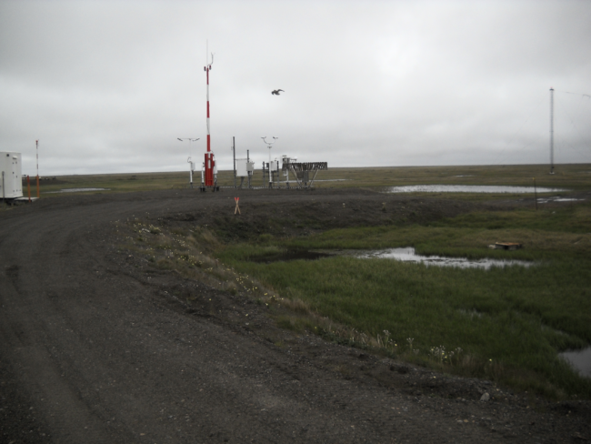 The Automated Weather Observing System (ASOS) at the Utqiaġvik (Barrow) Airport, photographed in summer 2017. This system has been recording temperature data so high, it was flagged by NOAA as a possible mistake (Photo courtesy of NOAA/National Weather Service)