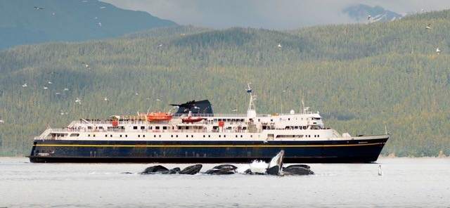 Whales feeding as the Matanuska MV Ferry passes. Photo by Cameron Byrnes.