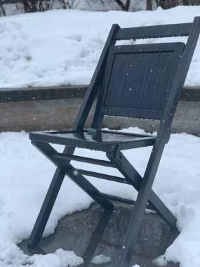 The Empty Chair Memorial in Capital School Park, just behind the State Capitol building, honoring members of the Juneau Japanese Community who were forced from their homes during World War II and sent to internment camps.