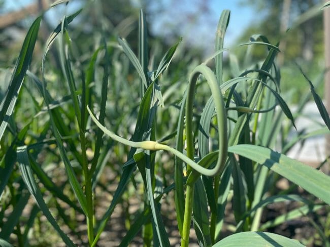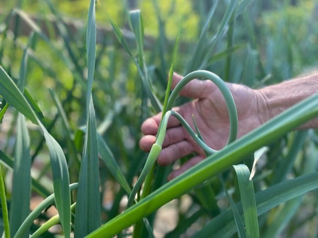 Buyarski adds that removing scapes also helps the garlic form bigger cloves by redirecting energy into the bulbs.
