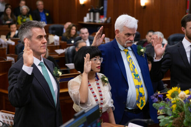 Rep. Genevieve Mina is sworn-in as the second Filipino legislator since Thelma Buchholdt in almost 50 years. (Photo courtesy of Genevieve Mina)