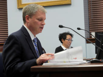Alaska Department of Education and Early Development Commissioner Michael Johnson gives an overview about education in Alaska to the Senate Education Committee, Jan. 24, 2019. (Photo by Skip Gray/360 North)