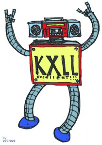 Boomy! The KXLL Boombox Robot can pick up objects in a rudimentary fashion, make an amazing dirty martini, and plays KXLL – Excellent Radio at an inappropriately loud volume! Boomy loves the radio as much as artificial intelligence allows, and if you try to take it away from him he will exercise his prime directive and eliminate you with his lasers. WE LOVE BOOMY!!